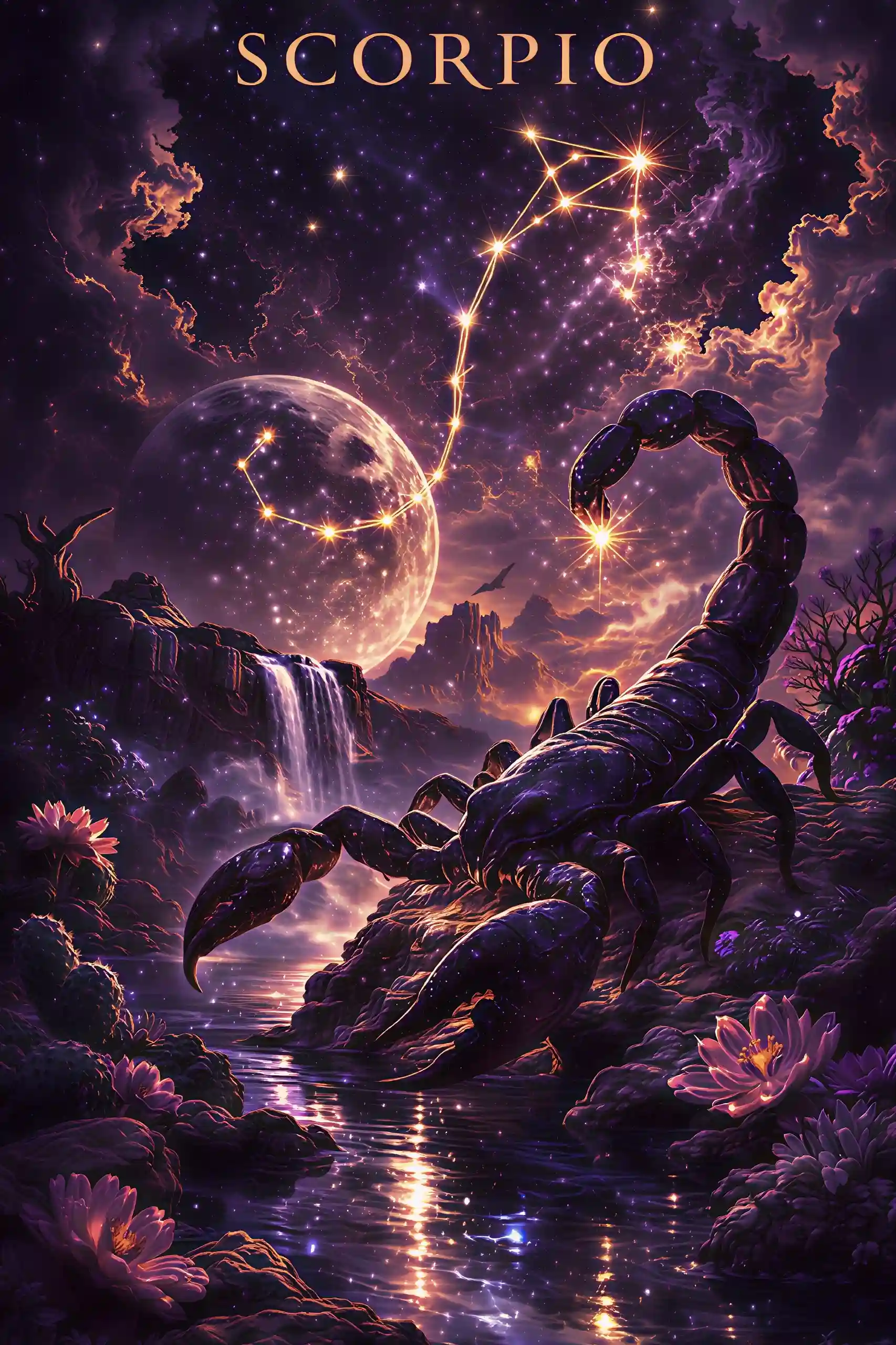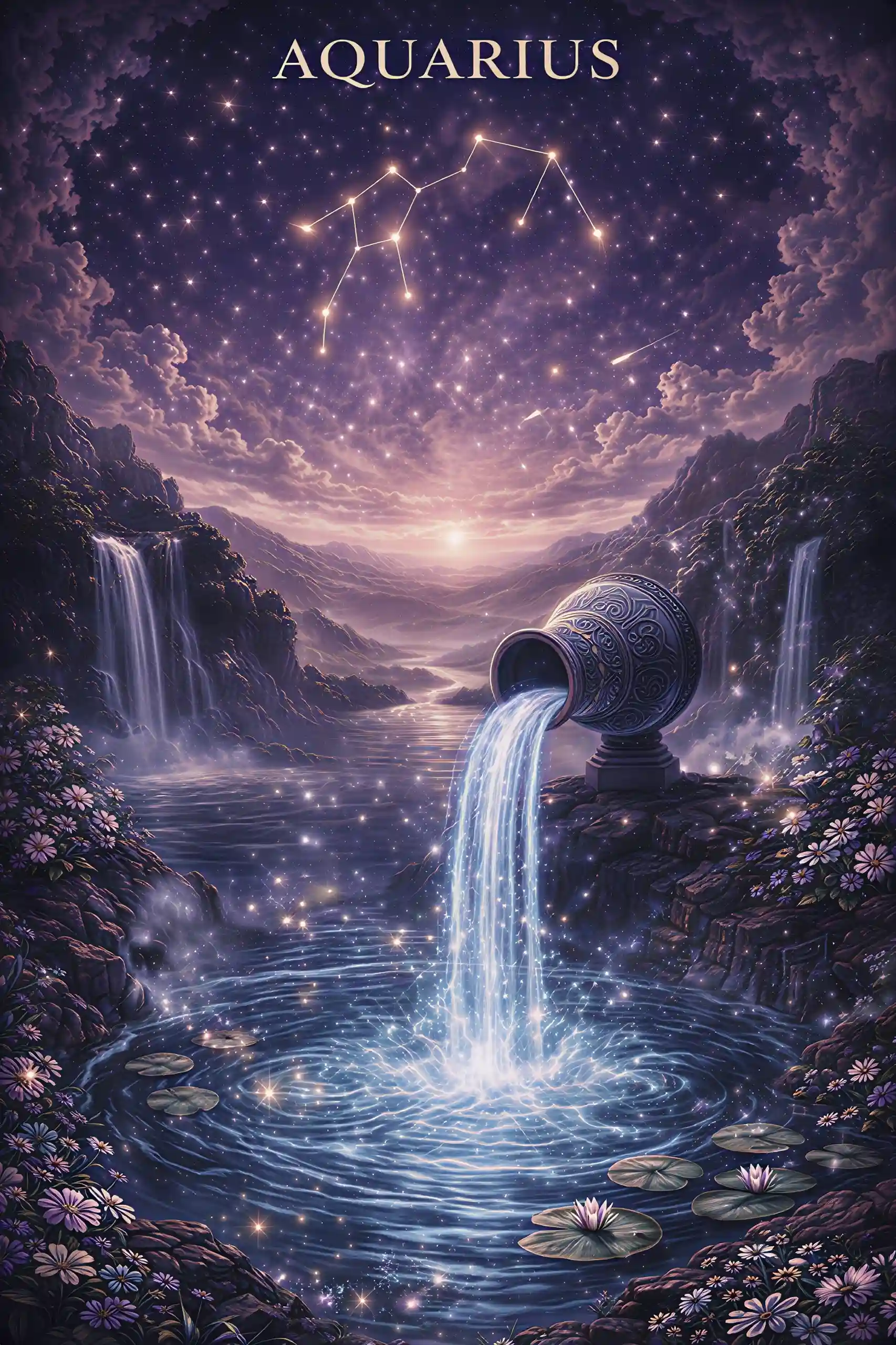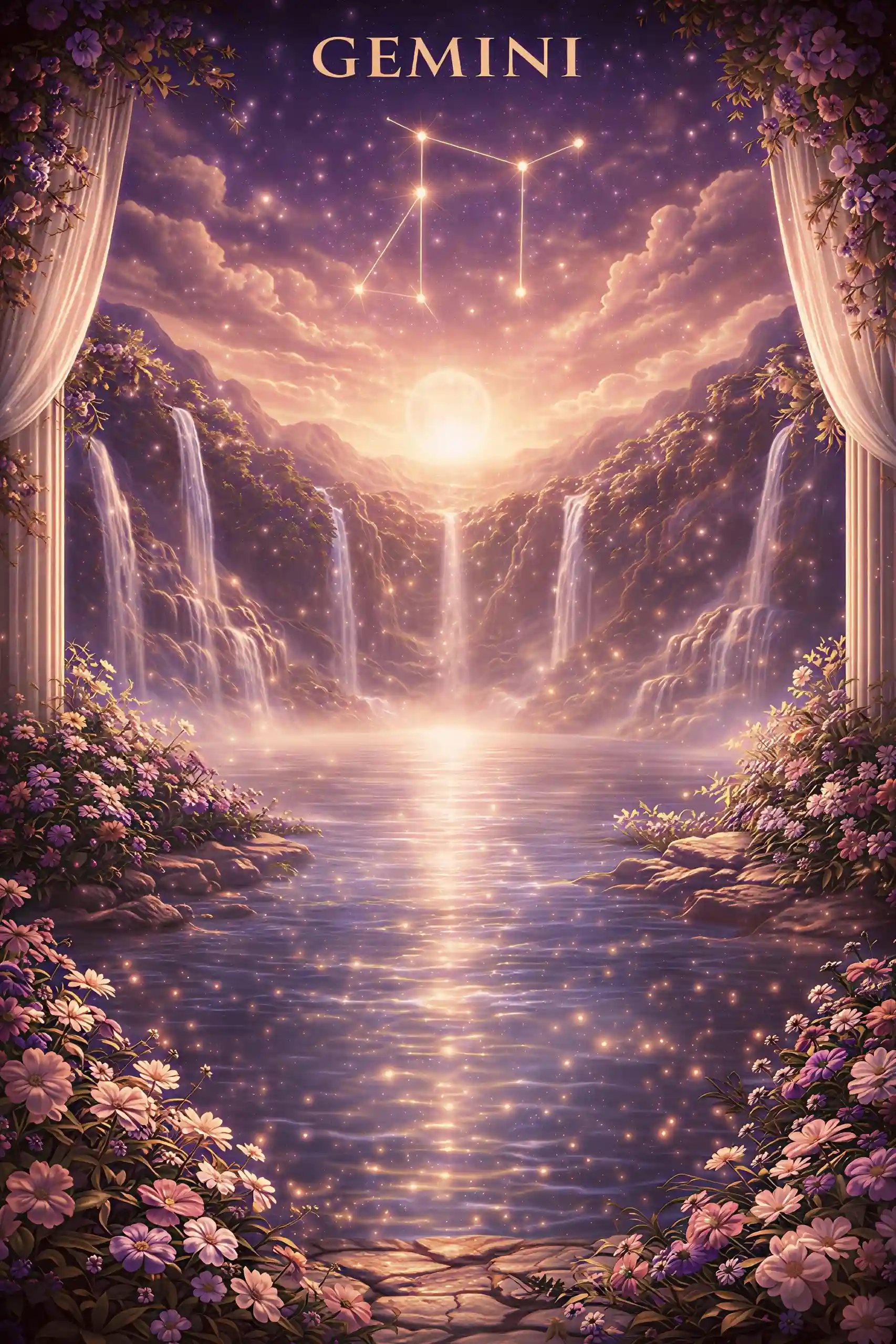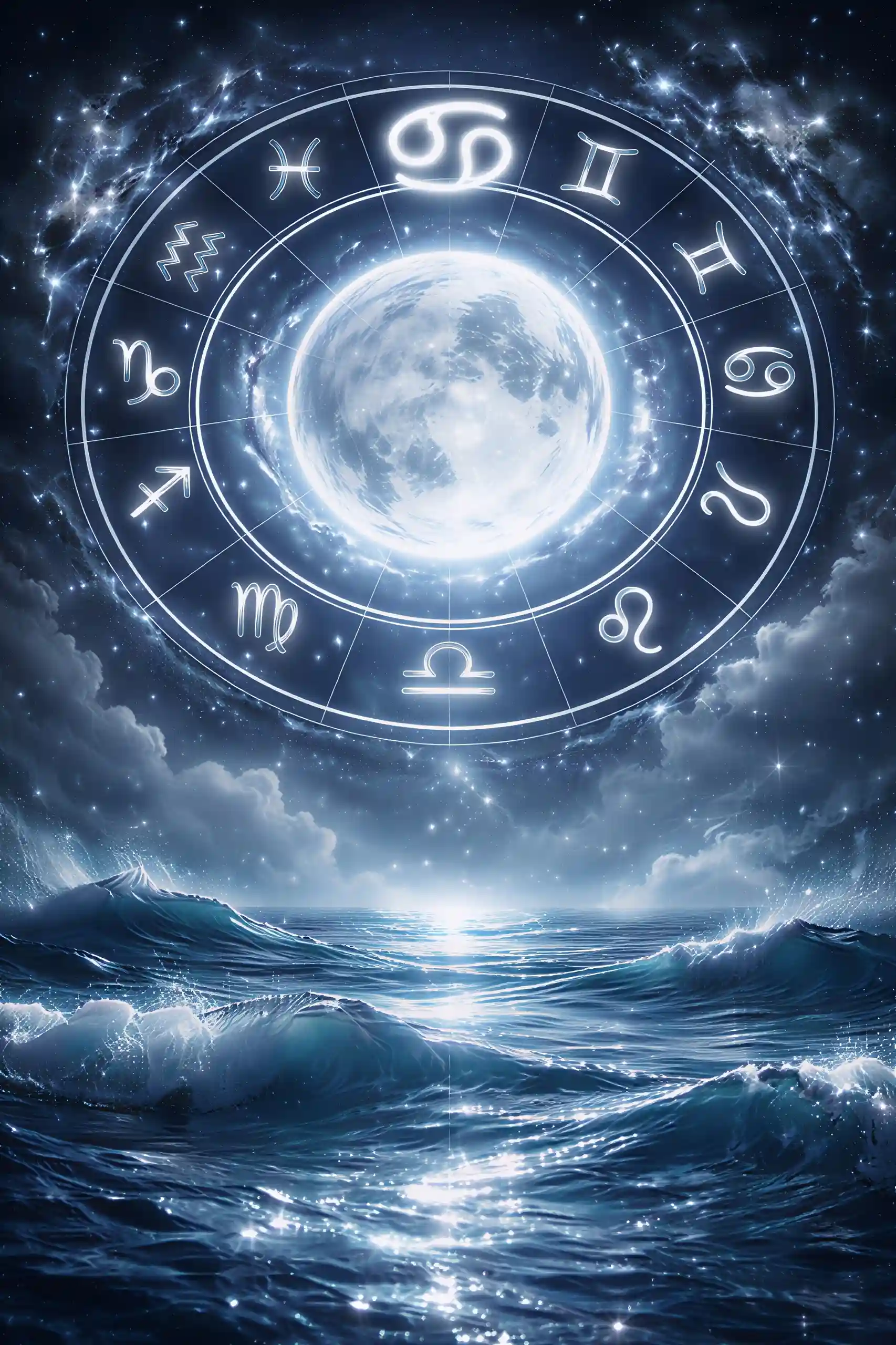 Schwebe auf dem Mond, umgeben von Licht, Sternen und Magie.