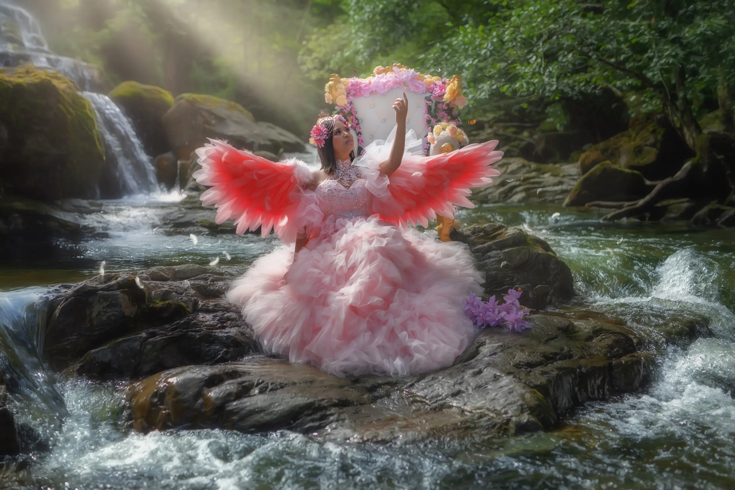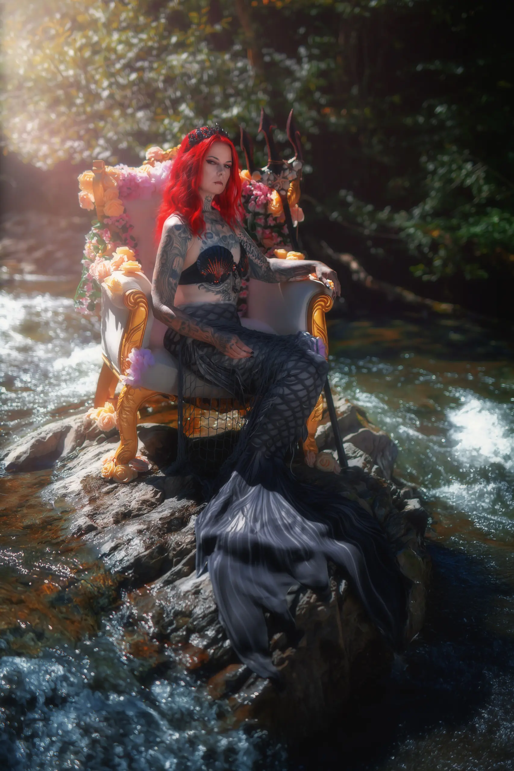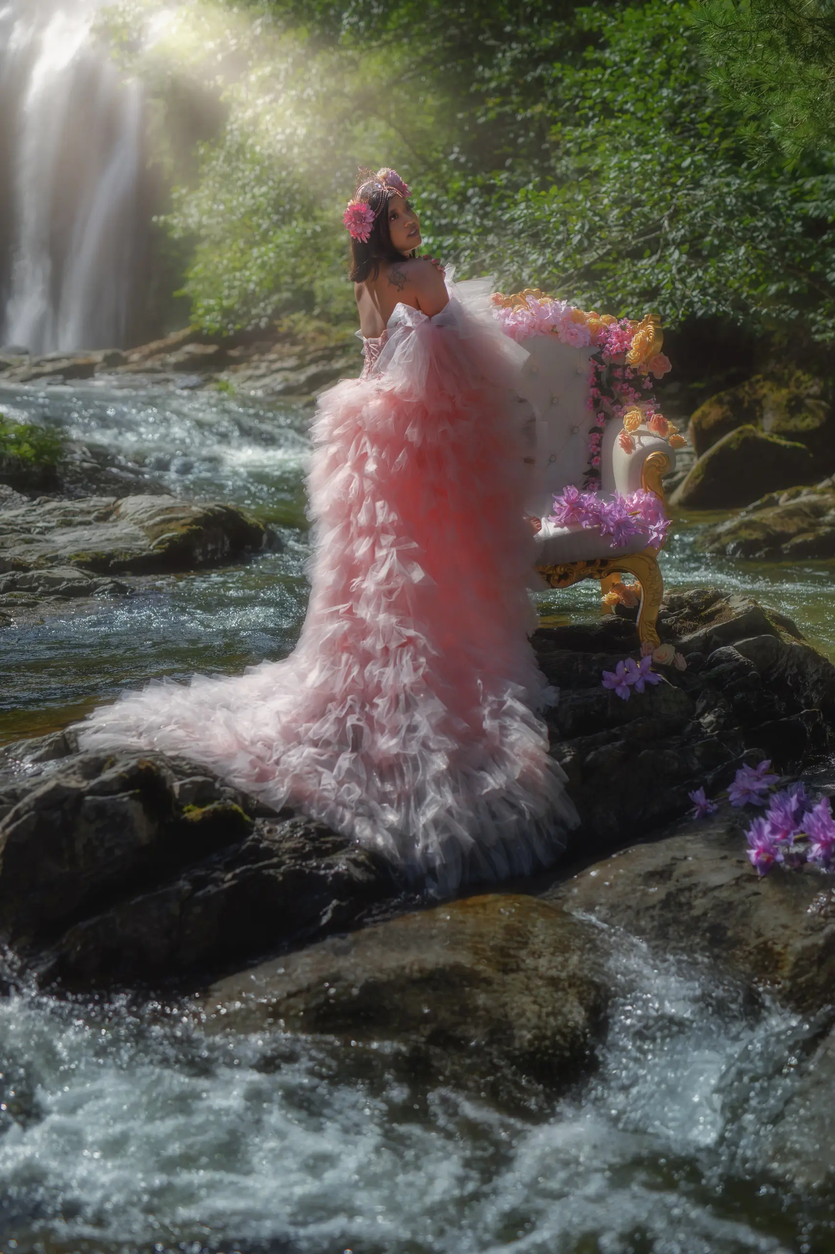 Ein einzigartiges Fotoshooting zwischen Thron Wald und fliessendem Wasser.