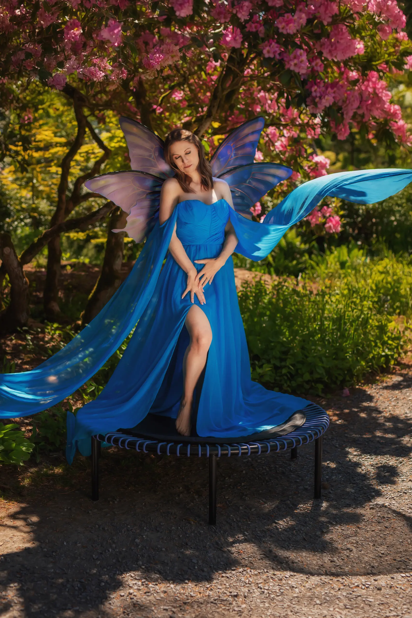 Für die Aufnahmen stehen Outfits aus meinem Fundus bereit – vor allem Flying Dresses und lange Tüllstoffe, die Bewegungen verstärken und die Illusion von Schwerelosigkeit perfekt unterstützen. Leichte Accessoires und farbige Bänder können zusätzlich die Dynamik deiner Sprünge unterstreichen.