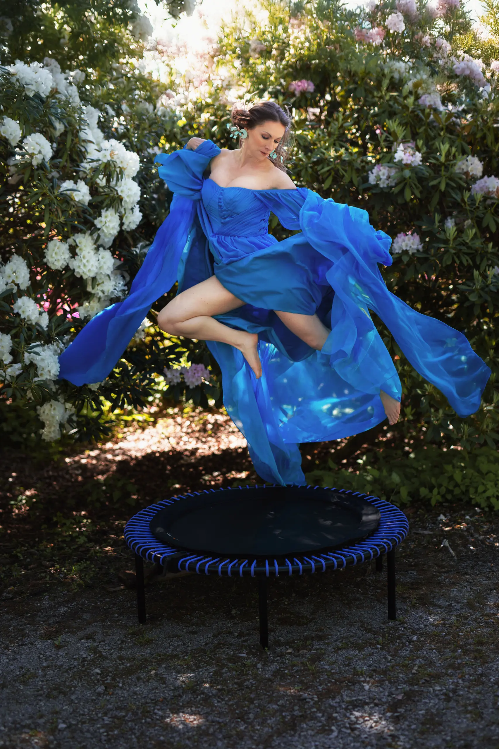 Dieses Event ist bewusst auf maximal 5 Teilnehmerinnen limitiert, um jedem ausreichend Zeit, Anleitung und Raum zu geben. Vorkenntnisse sind nicht nötig – Diana sorgt dafür, dass du sicher und elegant auf dem Trampolin springst. So entsteht eine Atmosphäre von Konzentration, Freiheit und fast magischer Leichtigkeit – ein Ort, an dem außergewöhnliche, fast schwerelose Fotos entstehen.
