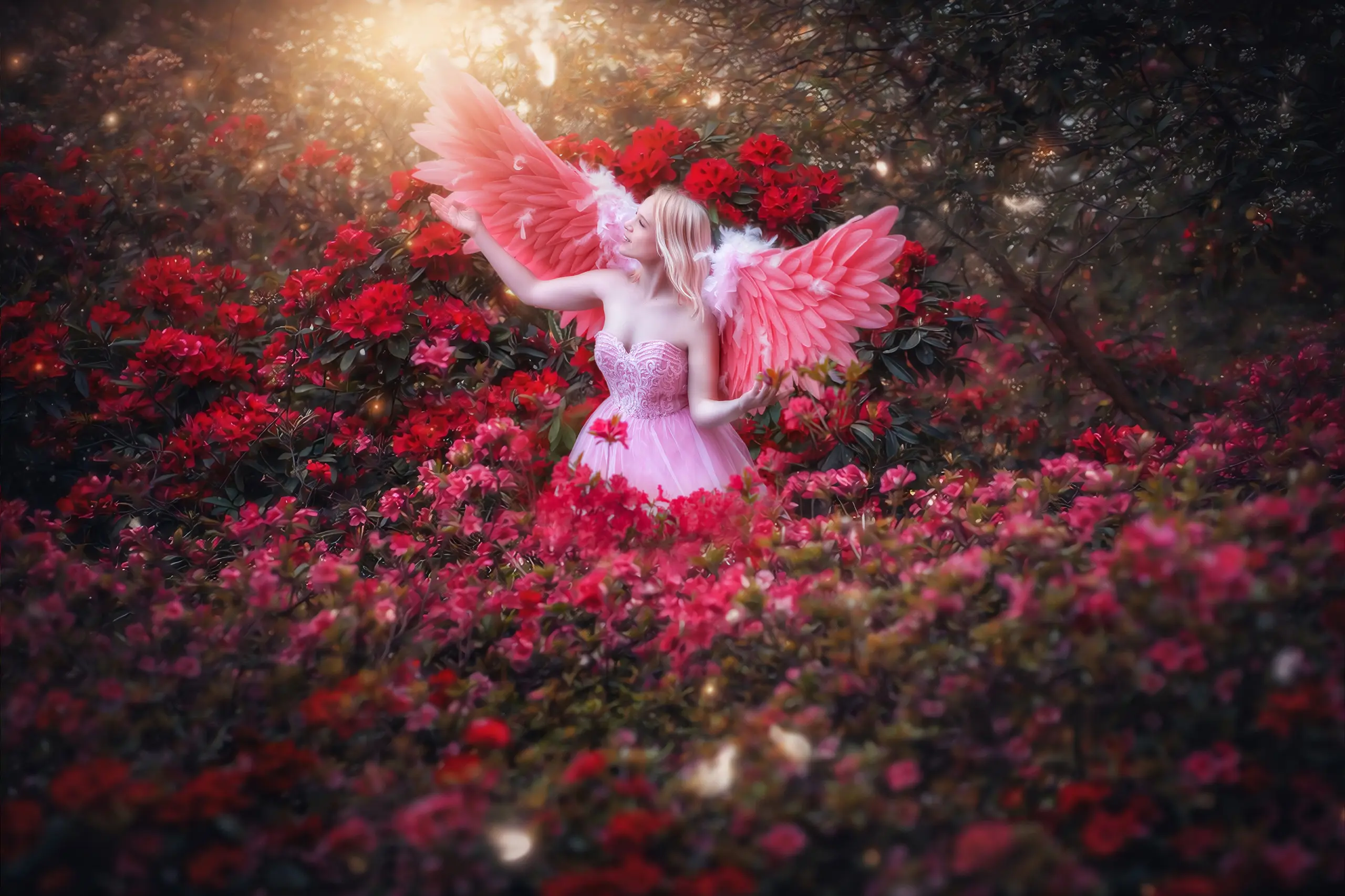 Romantisch, verspielt und voller Leichtigkeit – rosa Blumen verleihen jedem Bild einen Hauch von Zartheit und märchenhafter Stimmung.